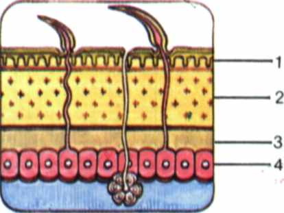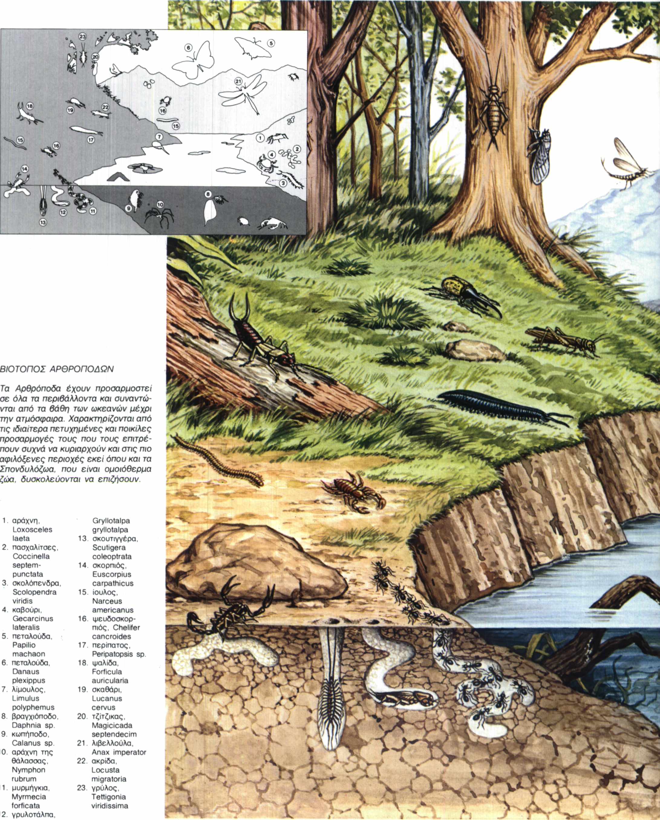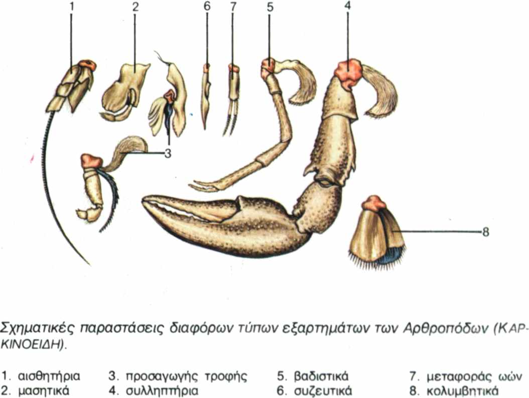 Λεπτομέρεια κατασκευής του εξωτερικού περιβλήματος των Αρθροπόδων. Διακρίνονται οι 4 στρώσεις: 1. Τριπλή εξωτερική στρώση (πρώτη στρώση) 2. Στρώση με χρωματοφόρα κύτταρα (δεύτερη στρώση) 3 Ελαστική άχρωμη πολυελασματική στρώση (τρίτη στρώση). 4. Μονοκυτταρική στιβάδα (τέταρτη στρώση).