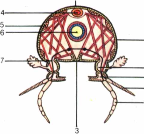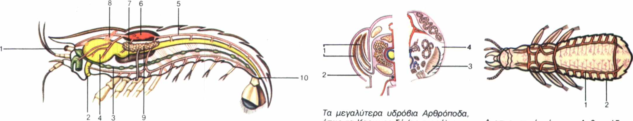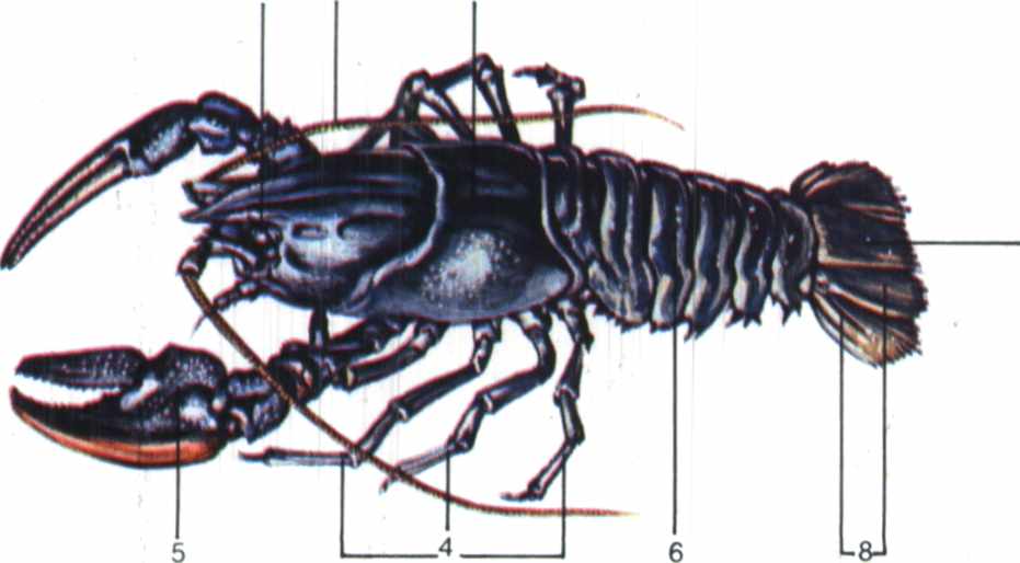 Εσωτερική μορφολογία Αρθροπόδου (αστακός). Διακρίνονται τα διάφορα συστήματα και τα όργανα του ζώου.