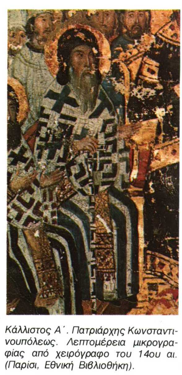 κάλλιστος Α' (άγιος) (τέλη 13ου αι. - 1364). Πατριάρχης Κωνσταντινουπόλεως (1350 - 53, 1355 - 64). Για την καταγωγή του, τις σπουδές του και γενικά τα πρώτα χρόνια της ζωής του δε σώζεται καμιά πληροφορία. Αργότερα ασκήτευσε στο ?γιον Όρος στη σκήτη του Μαγουλά και στη Μονή Ιβήρων, όπου γνώρισε το Γρηγόριο* ...