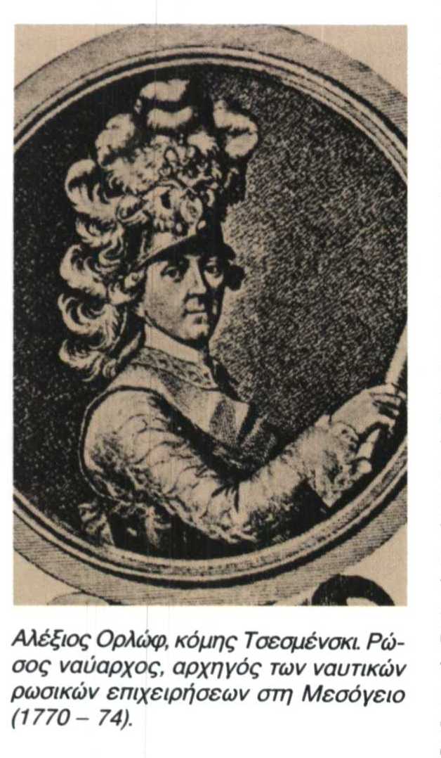 Ορλώφ, Αλέξιος (Αλεξέι Γκριγκόριε- βιτς) κόμης Τσεσμένσκι (1737 -1808). Ρώσος ναύαρχος, αδελφός του Γκριγκόρι (Γρηγορίου) Ορλώφ*, αρχηγός των ναυτικών ρωσικών επιχειρήσεων στη Μεσόγειο (1770 - 74). Είχε ενταχθεί σε μικρή ηλικία (1749) στο στράτευμα και το 1762 πήρε ενεργό μέρος στη συνωμοσία της αυτοκράτειρας ...