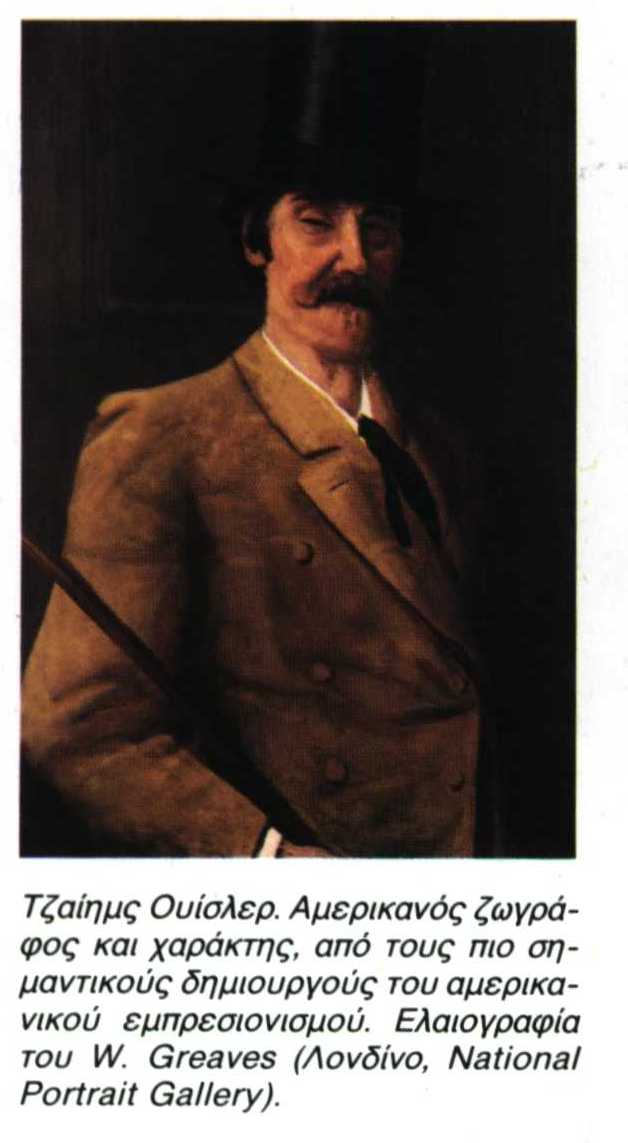 Ουίσλερ (Whistler), Τζαίημς (Άμποττ Μακ Νήλλ) (1834 - 1903). Αμερικανός ζωγράφος και χαράκτης, αναμφίβολα ένας από τους πιο σημαντικούς δημιουργούς του αμερικανικού εμπρεσιονισμού. Γεννήθηκε στο Lowell της Μασσαχουσέττης από γονείς σκωτοιρλανδικής καταγωγής και από το 1843 ως το 1849 έζησε στην Πετρούπολη ...