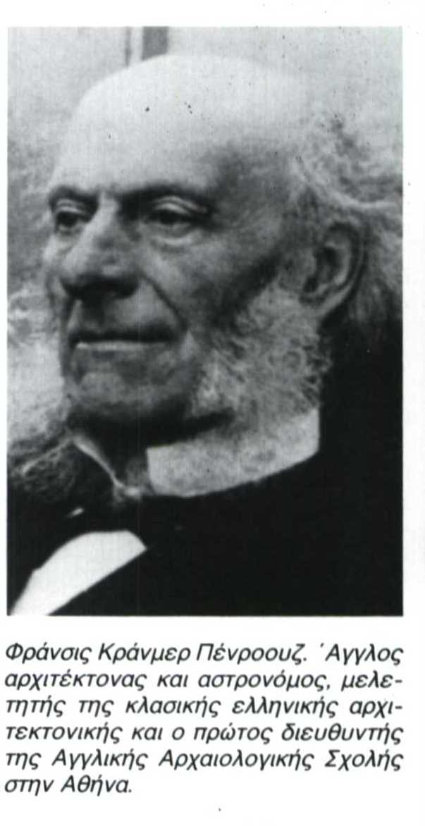 Πένροουζ (Penrose), Φράνσις Κράνμερ (1817 - 1903). ΄Αγγλος αρχιτέκτονας, από τους πρώτους μελετητές της κλασικής ελληνικής αρχιτεκτονικής και ο πρώτος διευθυντής της Αγγλικής Αρχαιολογικής Σχολής στην Αθήνα. Γεννημένος στο Bracebridge από εξαιρετικά μορφωμένους γονείς, παρακολούθησε τα εγκύκλιο μαθήματα ...