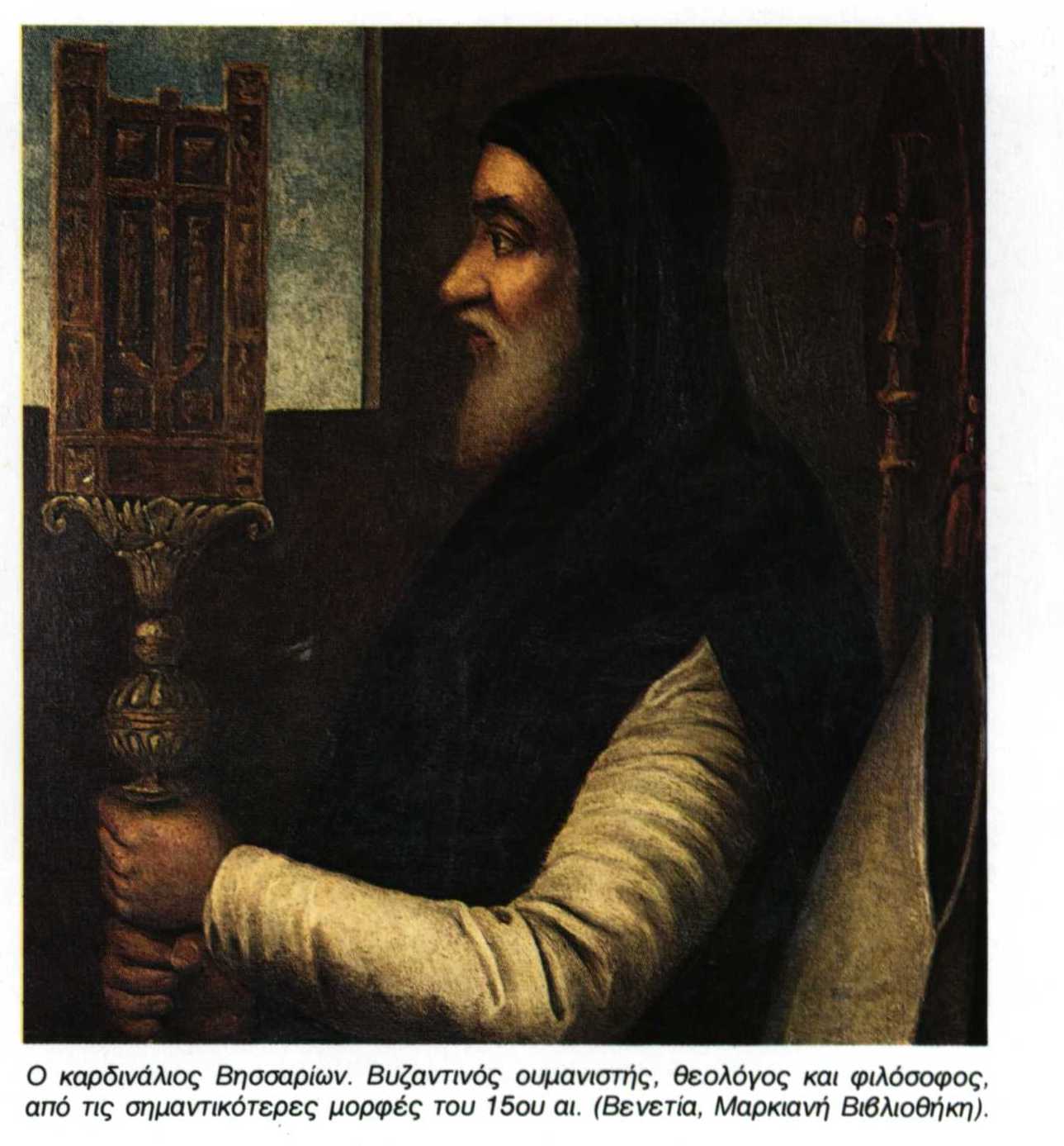 Βησσαρίων, ο Καρδινάλιος (κοσμ. όν. Ιωάννης) (Τραπεζούντα, περ. 1403 - Ραβέννα, 1472). Βυζαντινός ουμανιστής, θεολόγος και φιλόσοφος, μία από τις σημαντικότερες μορφές του 15ου αι. Μορφώθηκε (1415 - περ. 1431) στην Κωνσταντινούπολη, με δασκάλους πρώτα το Γεώργιο Χρυσοκόκκη και αργότερα τον Ιωάννη Χορτασμένο. ...